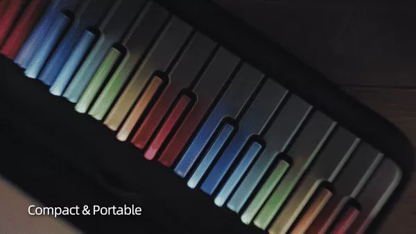 Absolutely thrilled with this portable piano! The interactive LED lights are a game-changer, guiding my fingers for an intuitive learning experience. I'm also loving the multi-functional chord pad which allows me to play over100 chords and instruments with just a tap. It's compact and lightweight design is perfect for making music on the go. Plus, it provides free access to the PopuMusic app, packed with lessons, games, and tools to enhance my playing.